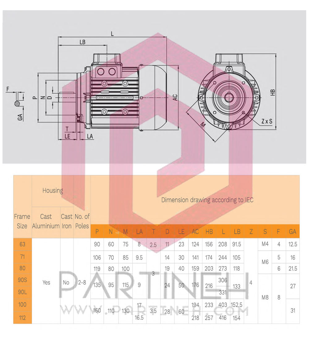 الکتروموتور 3 فاز فریم 112M آلومینیومی 4 کیلووات (5.5 اسب) 3000 دورB14 الکتروژن