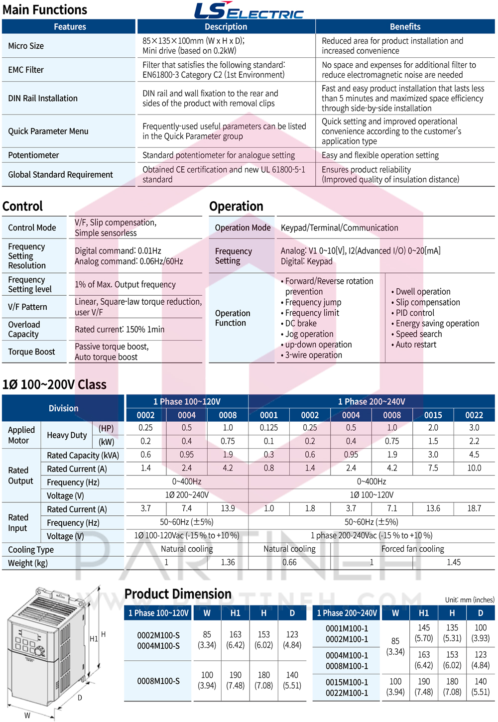 نقد و بررسی اینورتر تک فاز 0.75 کیلو وات سری M100 برند LS مدل LSLV0008M100-1EOFNA