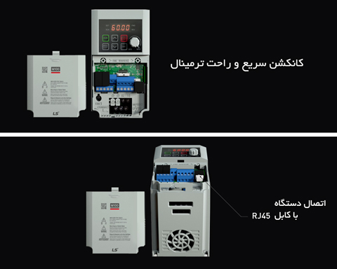 دارای پورت RS485 برای برقراری ارتباط راحت تر با امکان اتصال به رایانه و امکان راه اندازی توسط نرم افزار DRIVE VIEW