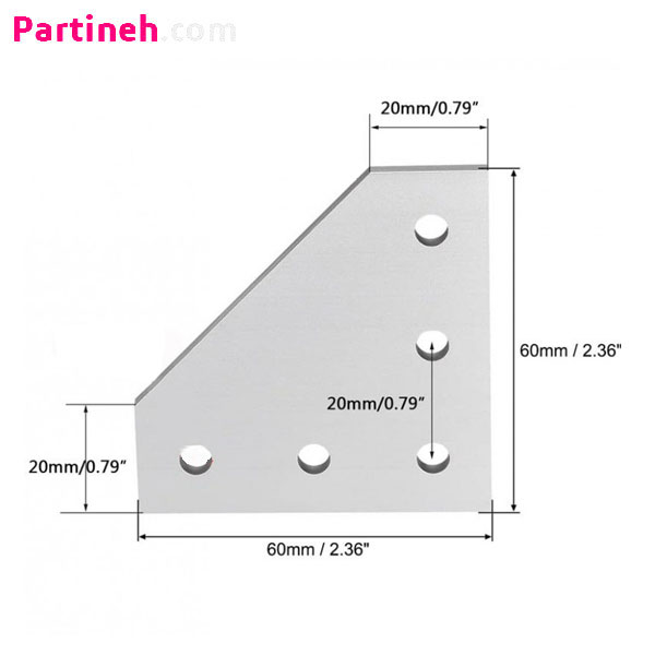 براکت 5 سوراخ ال شکل پروفیل آلومینیومی 20*20 میلیمتر