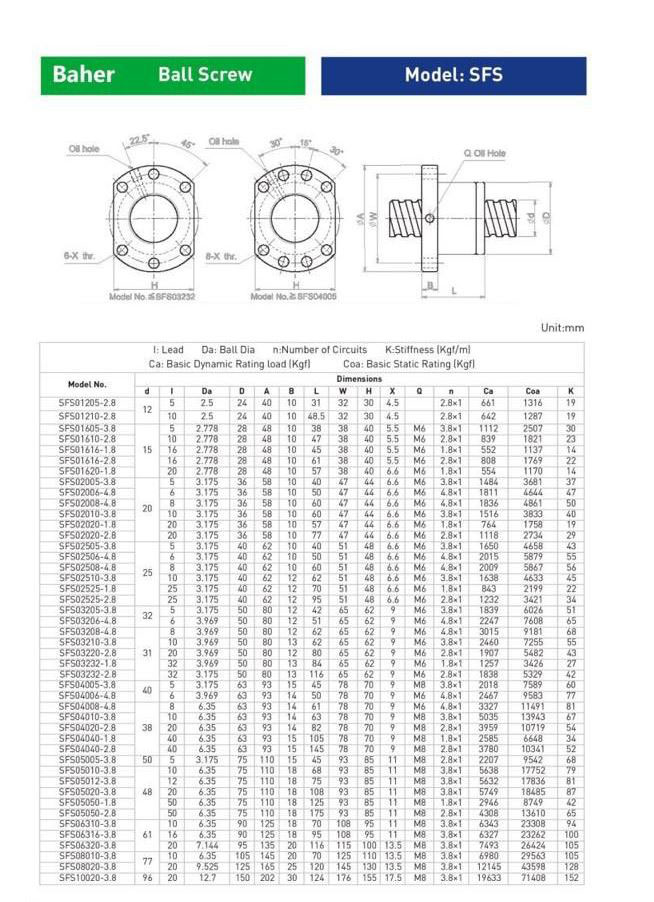 BAHER SFS2010 Ball Screw Nut Diameter 20mm pitch 10mm