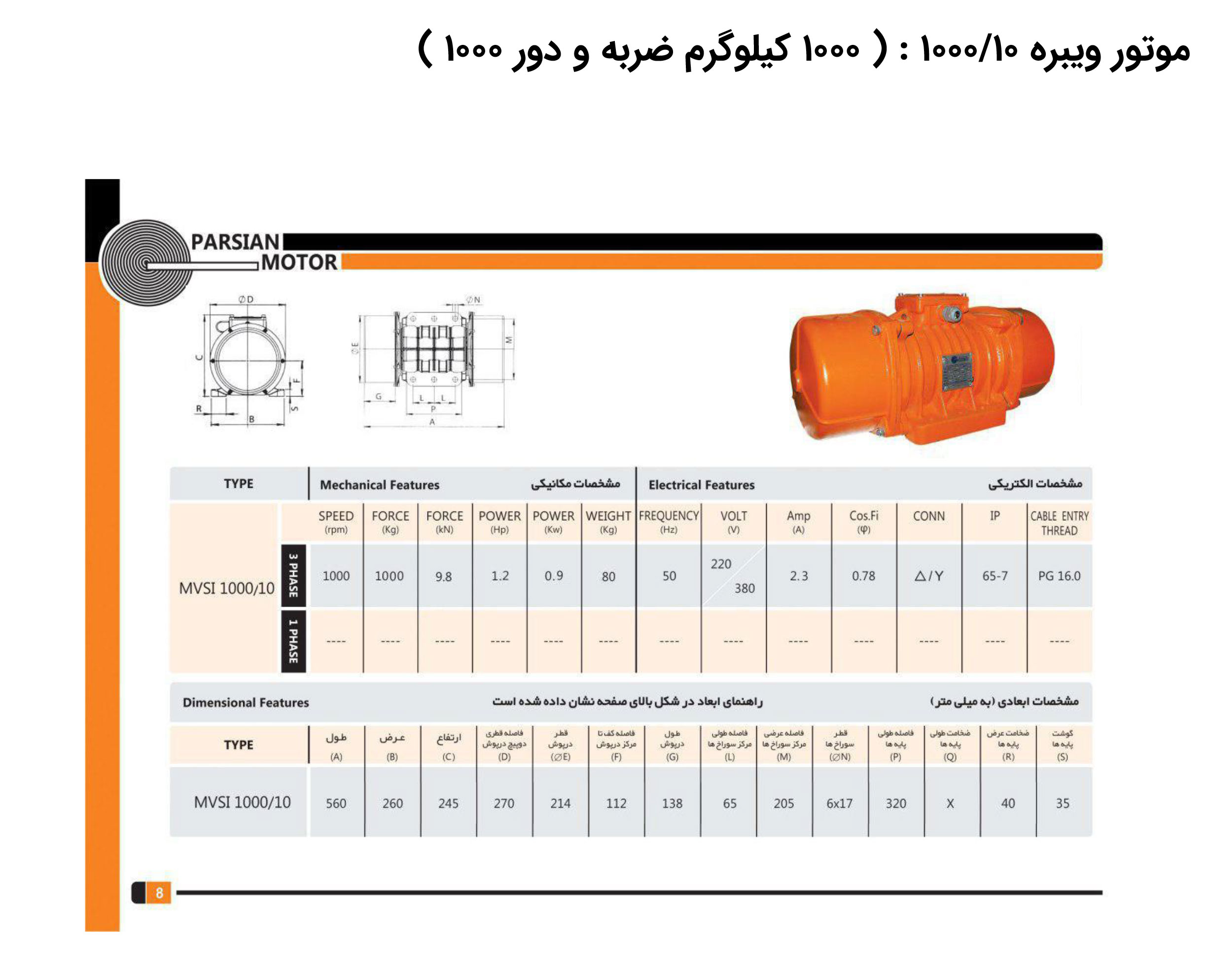 نقد و بررسی موتور ویبره بدنه سه فاز 1000/10 پیلسا (پارسیان) 1000 دور