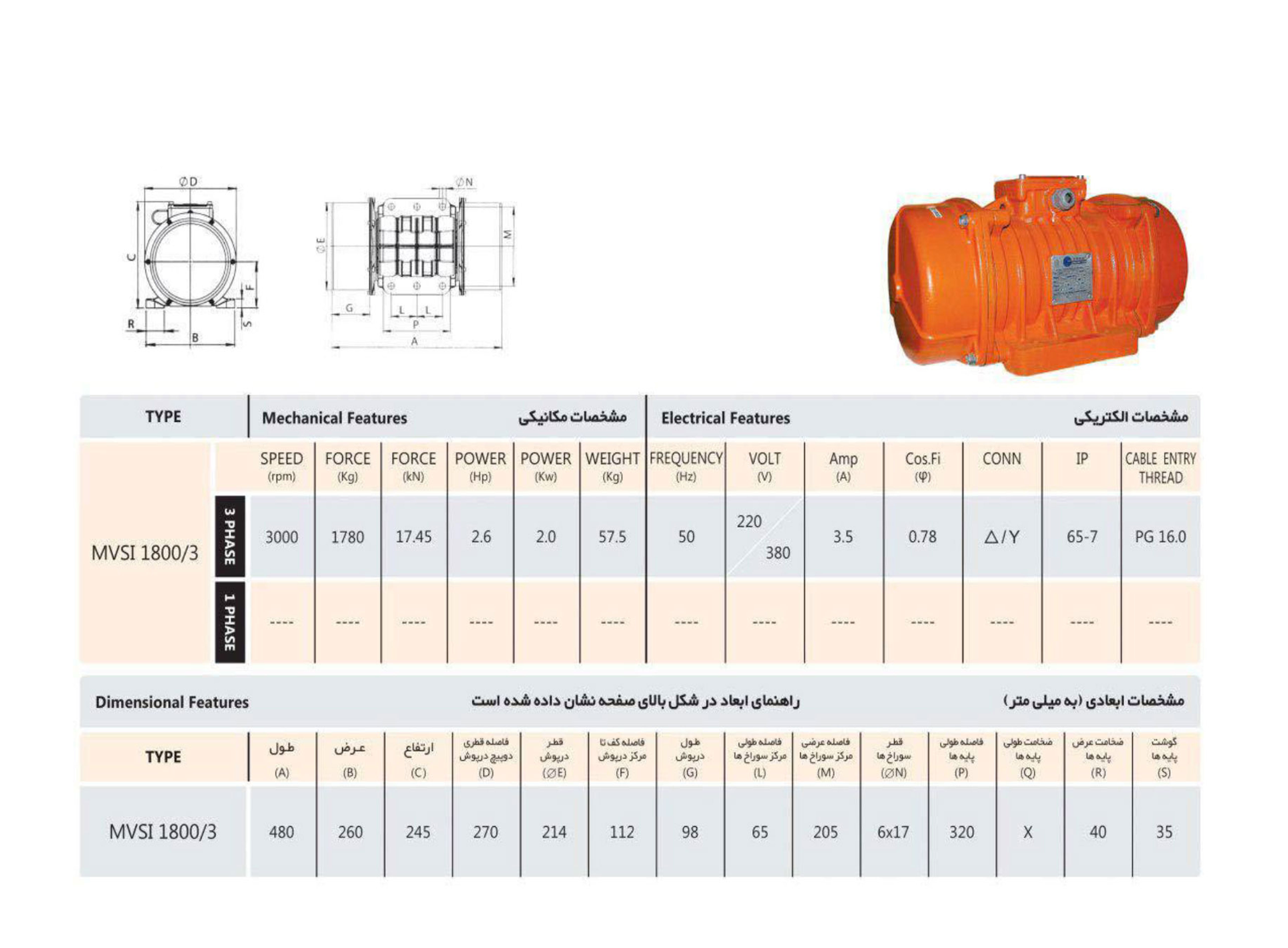 نقد و بررسی موتور ویبره بدنه سه فاز 1800/3 MVPپیلسا (پارسیان) 1800 کیلو گرم 3000 دور