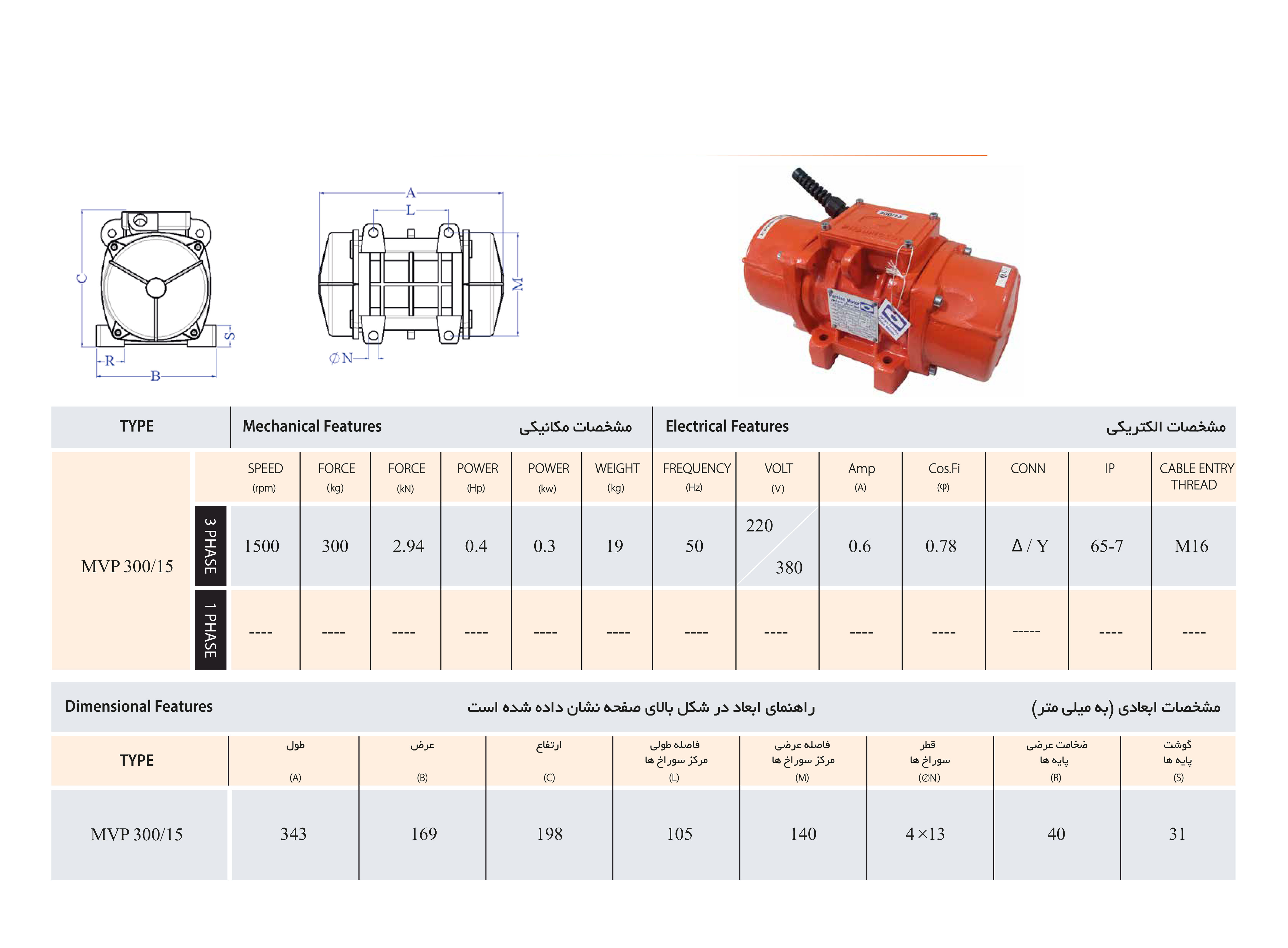 موتور ویبره بدنه سه فاز 300/15 MVPپیلسا (پارسیان) 300 کیلو گرم 1500 دور