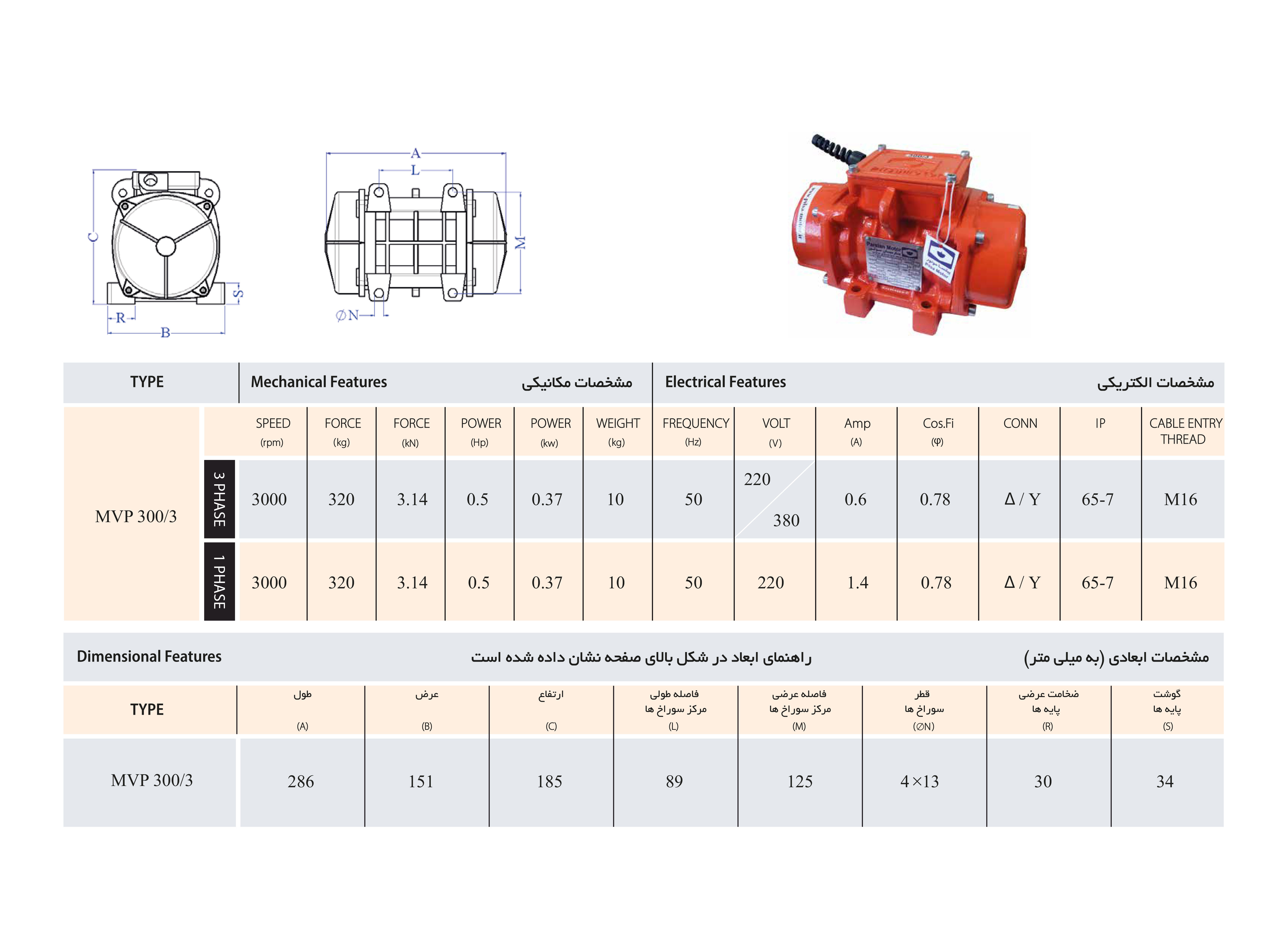 نقد و بررسی موتور ویبره بدنه سه فاز 300/3 MVP پیلسا (پارسیان) 300 کیلوگرم 3000 دور
