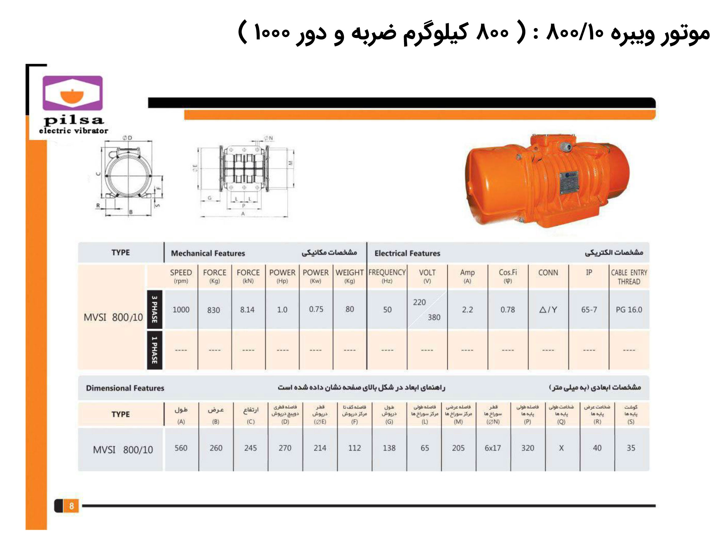 نقد و بررسی موتور ویبره سه فاز بدنه تیپ 800/10 پیلسا (پارسیان) 1000 دور