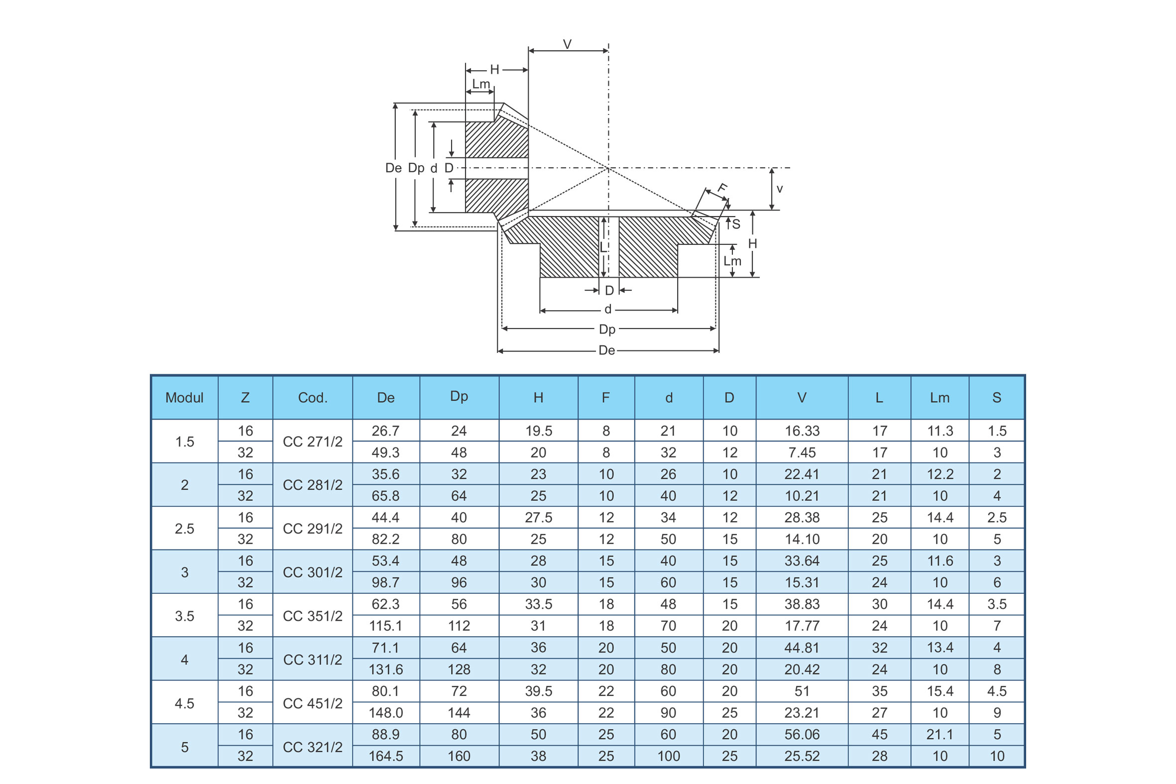 چرخ دنده مخروطی مدول 2 با تعداد دندانه 16 و 32 و نسبت تبدیل 1.2 برند OBC