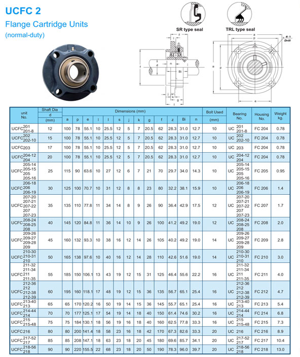 کاتالوگ یاتاقان هوزینگ مدل UCFC سری 200: